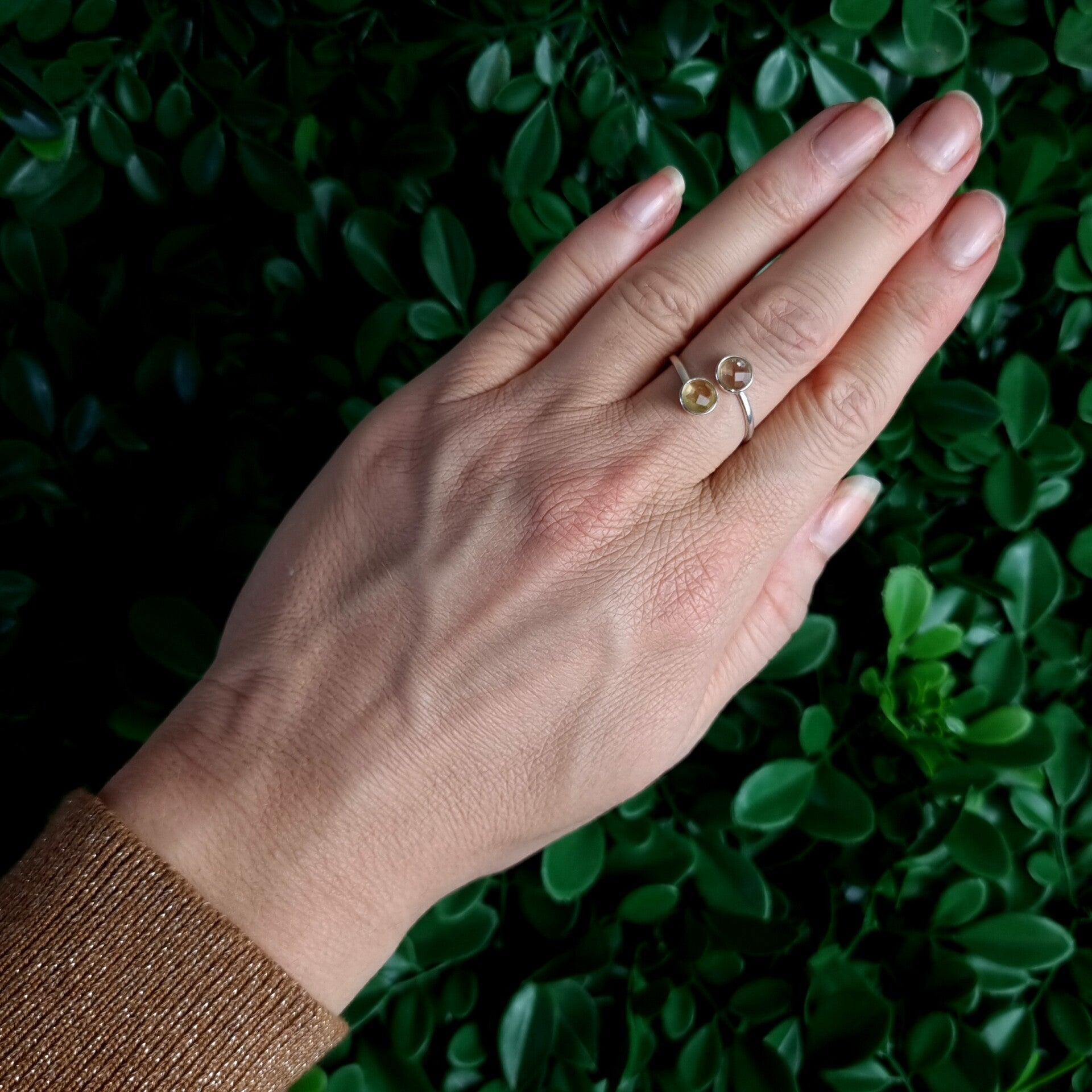 Een mooie subtiele zilveren ring met Citrien stenen.