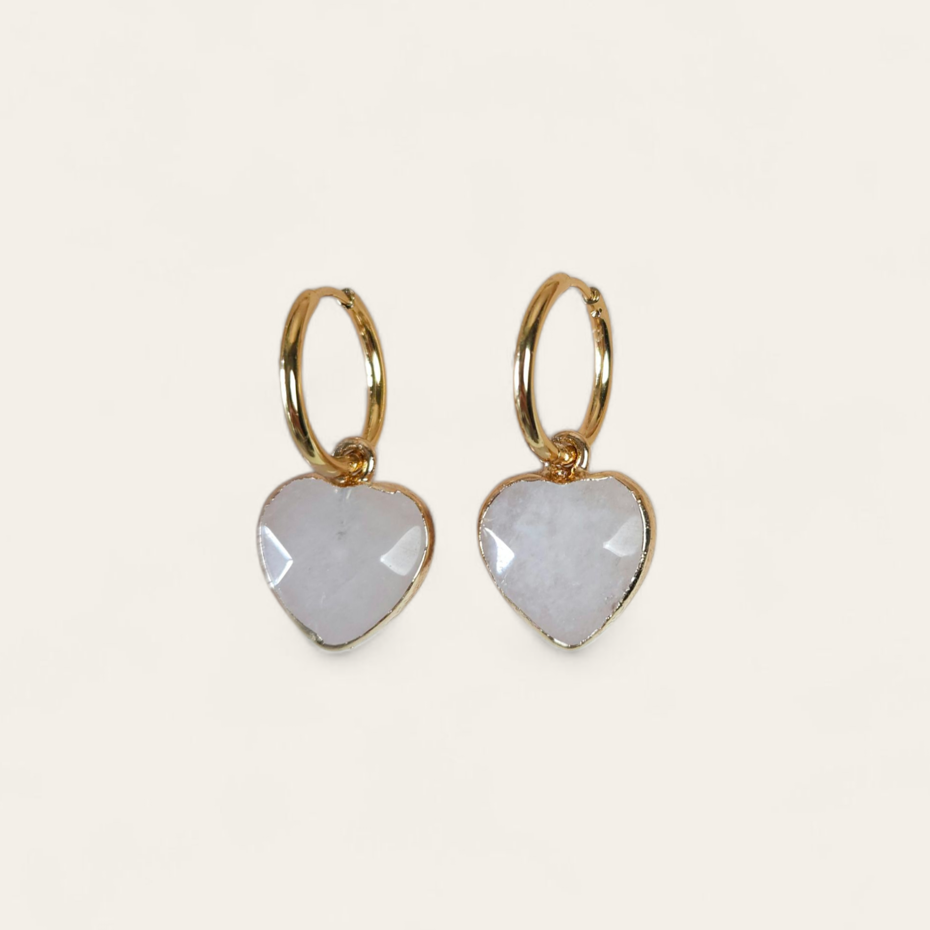 Elegante Stainless Steel oorbellen met hartvormige hanger van facetgeslepen kwarts.